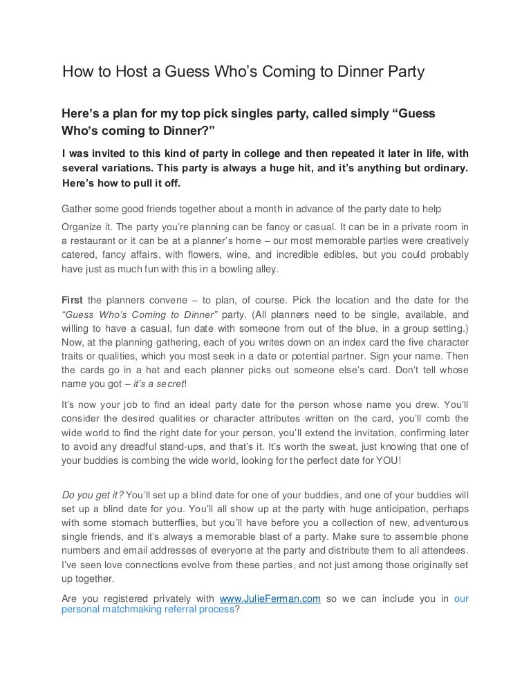 Staff of dedicated party analysts available 7 days/week to assist you. Homemade whole wheat bread (toasted)with a whipped ricotta, basil and marcona almond pesto, lime zest and marcona almonds. You can totally concentrate on food that person enjoys and have wonderful conversations centered around all that is going on in their life plus update them on yours. Perhaps the most memorable of all, though, was a dinner party i had when i was 18, mostly because it was the first i ever executed completely on my own. Having a trou normand after the entrée dishes have been cleared and the rest of the courses is a lovely pause, a chance to offer another toast to your.